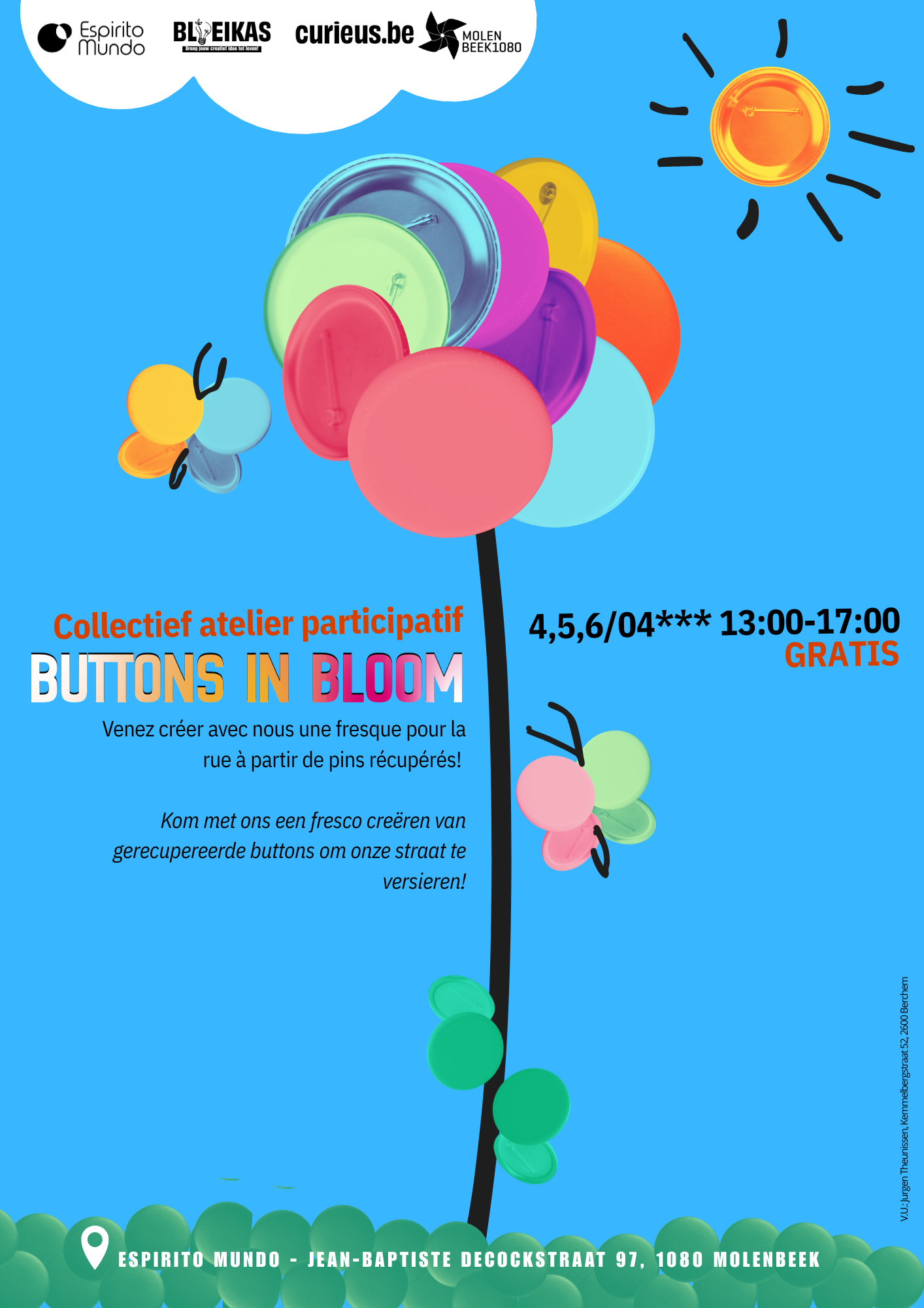 Als vereniging die zich inzet voor het milieu gebruiken we gerecupereerde buttons die we beschilderen en bevestigen om zo een kleurrijk kunstwerk te creëren, geïnspireerd door de natuur.